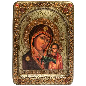 Живописная Икона "Образ Казанской Божьей Матери" на Кипарисе