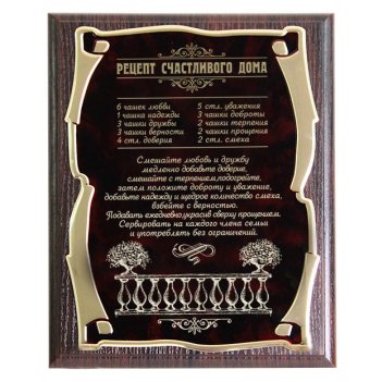 Плакетка Рецепт Счастливого Дома Золотая Серия