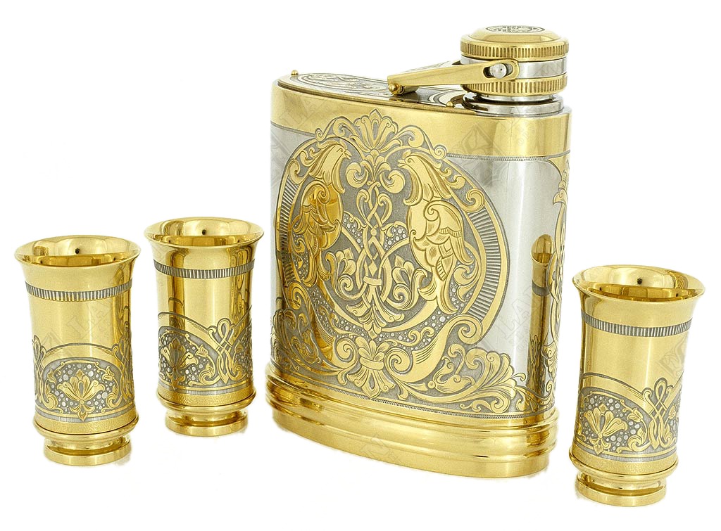 Набор охотничий ( фляга, 3 стопки ) златоуст