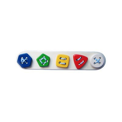 Развивающая игрушка «пуговицы-шнуровки «5 в ряд» геометрические». Описание: Цель: Развитие мелкой моторики, пространственного мышления, освоение навыков шнуровки. Состав игры: деревянная основа - 1шт, детали деревянные - 5шт, шнурок с фиксатором и деревянным наконечником — 1шт Размер: 0,02х0,08х0,43 Материал: дерево липа Вес: 190гр
