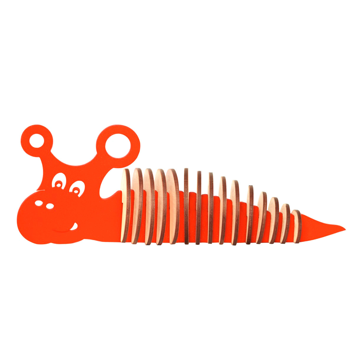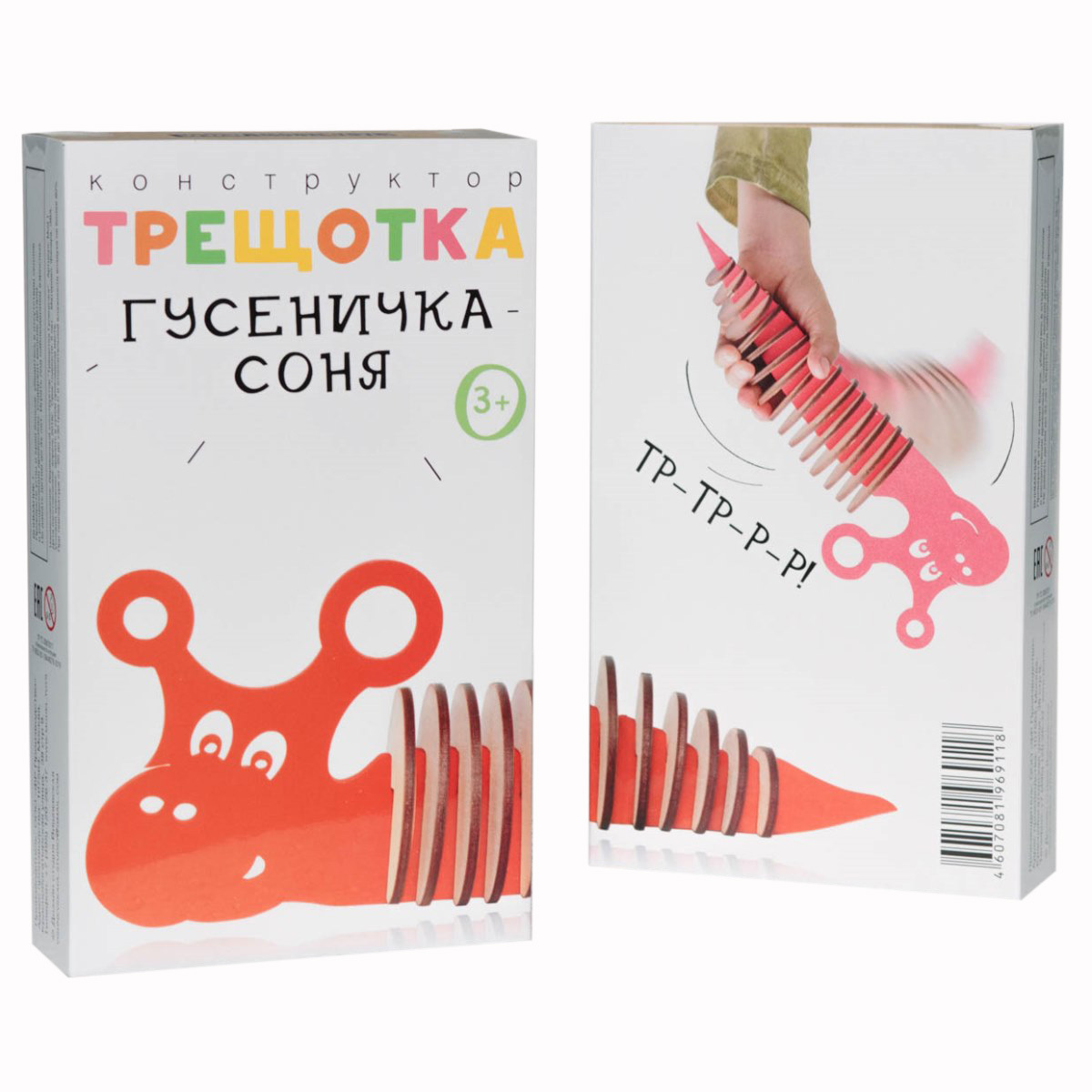 Конструктор трещотка. гусеничка соня. Описание: На основание из ЭВА одеваются фанерные блоки - колечки. Готовая гусеничка "трещит" как погремушка при раскачивании из стороны в сторону. Размер: 0,04х0,12х0,2 Материал: полимер, фанера Вес: 200гр