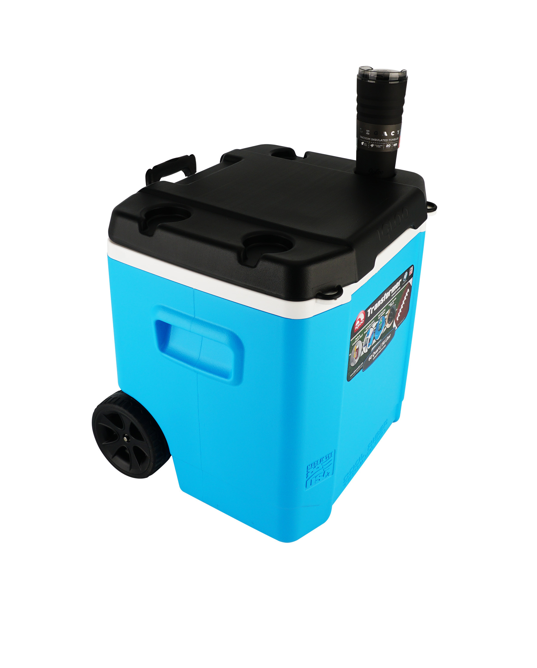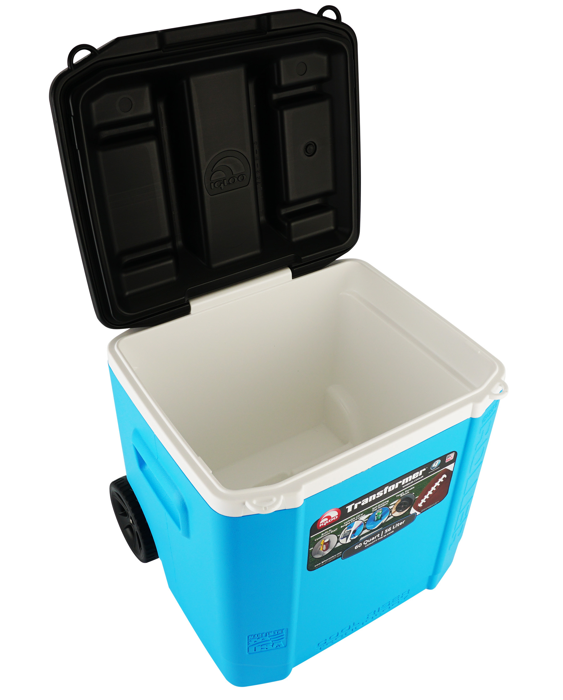 Изотермический контейнер igloo transformer 60 roller blue. Внутренние размеры: Длина: 45.72 см Ширина: 33.02 см Высота: 40.64 см Внешние размеры: Длина: 55.17 см Ширина: 46.41 см Высота: 50.17 см Объем: 56 литров (60 Quarts) Материал корпуса: Ударостойки пластик Материал камеры: Ударостойкий пластик Изоляция: Ultratherm® Петли: Интегрированные, пластиковые Ручки: Две боковsе интегрированные, телескопическая Вес: 5.99 кг