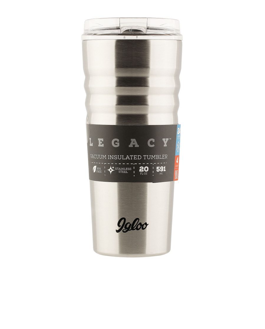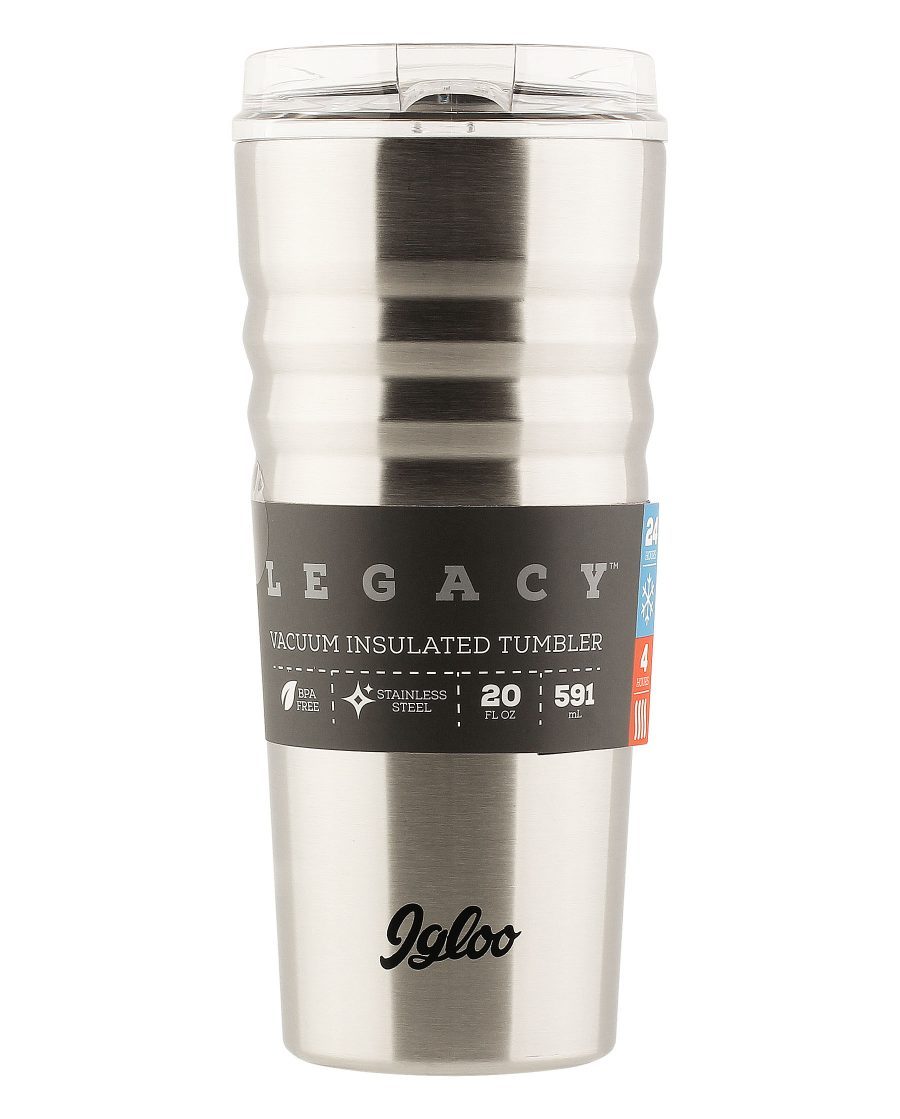 Кружка-термос из нержавеющей стали 591 мл igloo legacy steel. Объем: 591 миллилитров (20 ounces) Материал корпуса: Нержавеющая сталь 18/8 Материал колбы: Нержавеющая сталь 18/8 Пробка: Пластиковая Tritan™ на резьбе Сохраняет горячее: до 4 часов Сохраняет холодное: до 24 часов Особенности: Подходит к большинству автомобильных держателей стаканов • Легкая, компактная, небьющаяся кружа-термос с двумя стенками из нержавеющей стали 18/8 и вакуумной изоляцией. • Стильная крышка-пробка из прозрачного пластика BPA-Free TRITAN™ с прорезью для питья с фирменным логотипом Igloo позволяет контролировать уровень напитка, наслаждаться его цветом и ароматом, защищая от разбрызгивания. • Силиконовое уплотнительное кольцо на крышке для плотной фиксации. • Конструкция крышки с уступом для пальца позволяет удобно снимать крышку одним движением. • Благодаря прорези на крышке Ваш горячий напиток будет постепенно остывать, достигая оптимально комфортной температуры для питья, никогда не остывая слишком быстро. • Для настольного использования или размещения в автомобильных держателях стаканов (только вертикально). • Пожизненная гарантия изолирующего действия*. • Не использовать в посудомоечной машине (только для мытья руками). • Не размещать в СВЧ печи.