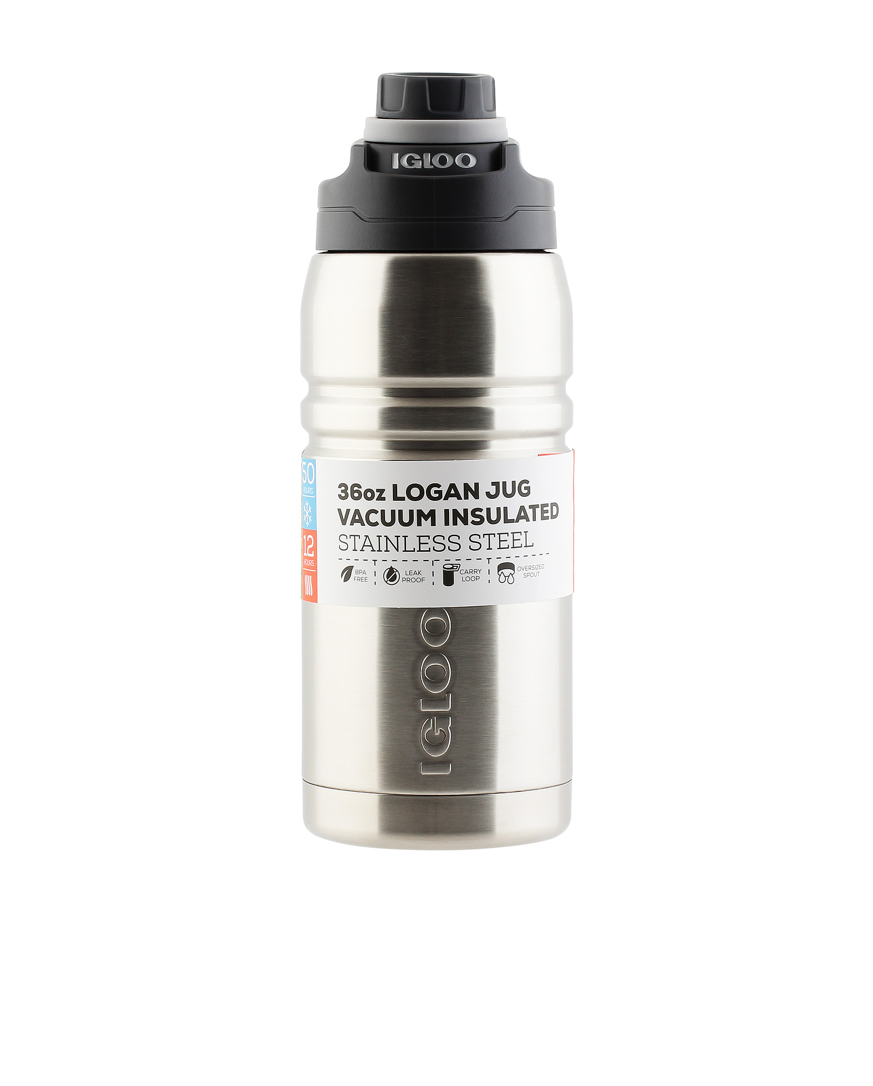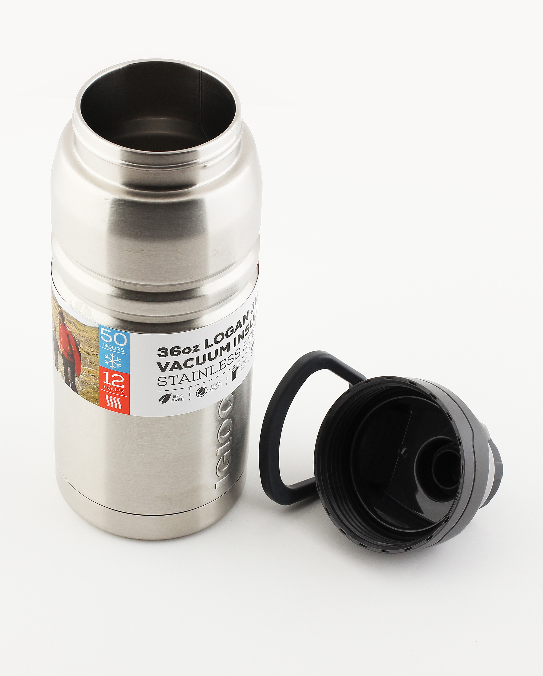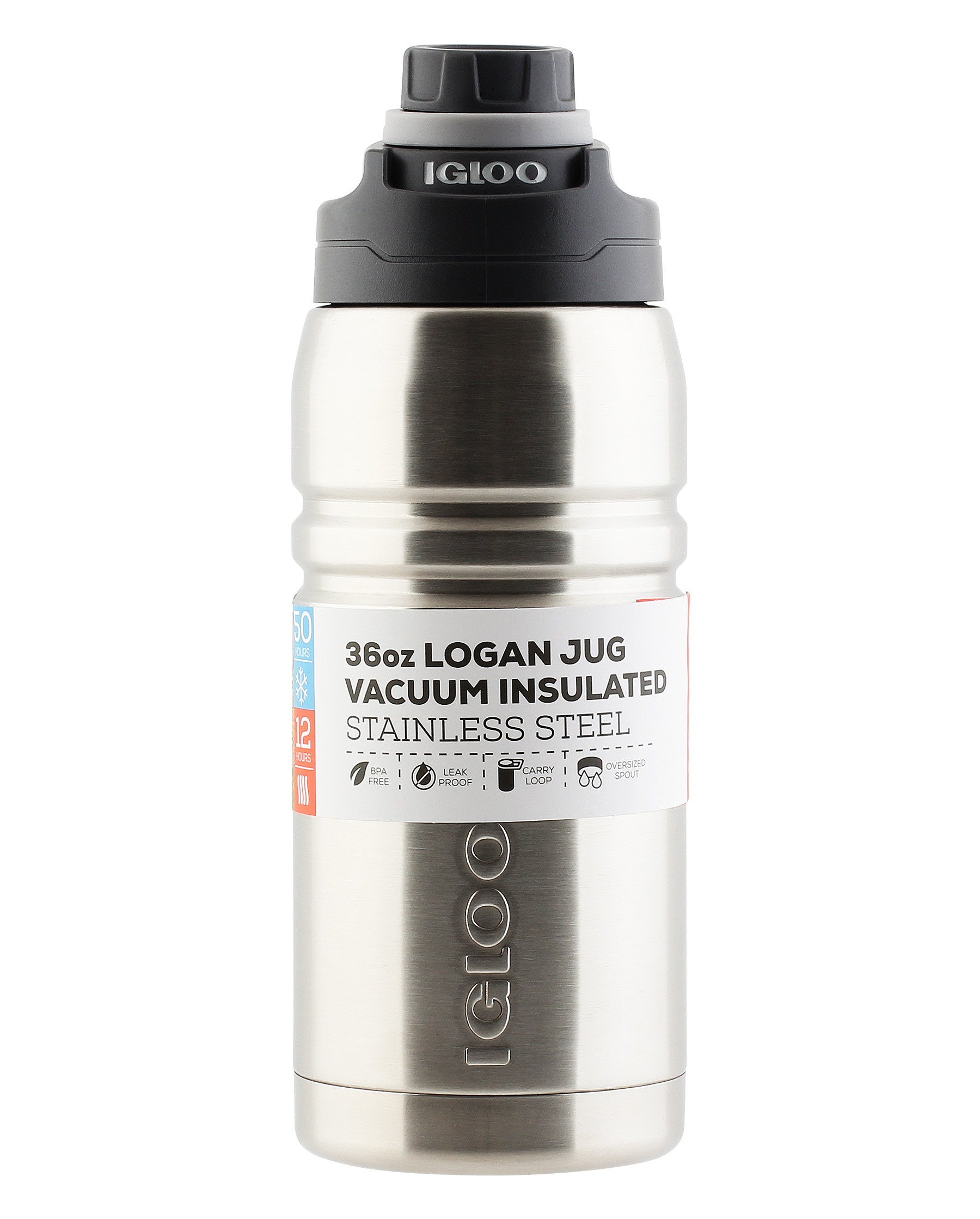 Термос из нержавеющей стали 1000 мл igloo logan 36 steel. Объем: 1000 миллилитров (36 ounces) Материал корпуса: Нержавеющая сталь 18/8 Материал колбы: Нержавеющая сталь 18/8 Пробка: Пластиковая Tritan™ на резьбе Сохраняет горячее: до 12 часов Сохраняет холодное: до 50 часов • Легкий, компактный,герметичный, небьющийся термос с двумя стенками из нержавеющей 18/8 стали и вакуумной изоляцией. • Для настольного использования, для отдыха на природе, для путешествий на автомобиле. • Объем 1,0л • Пожизненная гарантия изолирующего действия*. • Не использовать в посудомоечной машине (только для мытья руками). • Не размещать в СВЧ печи. Термос Logan 36oz надежный и 100% герметичный объемом 1л прекрасно подойдет для ежедневного использования, в длительных поездках, во время отдыха на природе благодаря превосходным характеристикам сохранения температуры напитков: в режиме горячее 12 часов, в режиме холодное 50 часов. Конструкция пробки позволяет использовать термос для питья, а втроенное кольцо — для переноски.  развернуть описание ▼