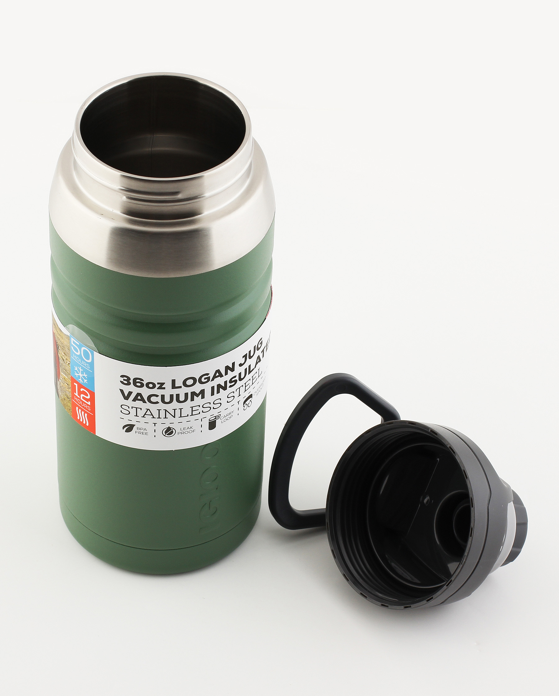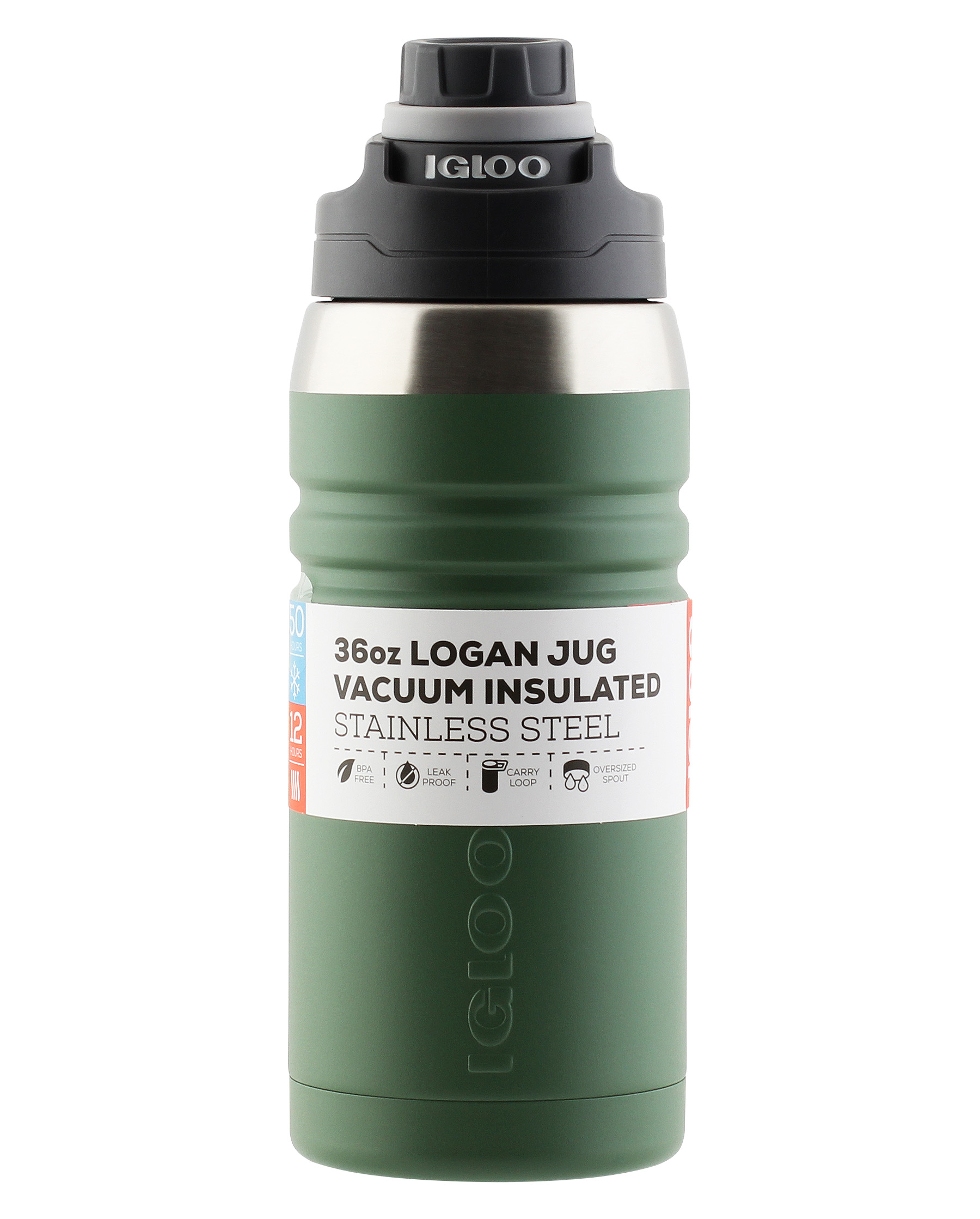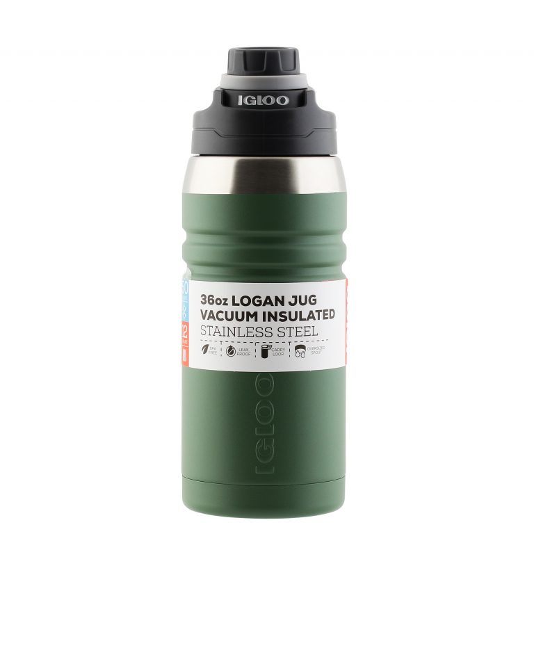 Термос из нержавеющей стали 1000 мл igloo logan 36 dark green. Объем: 1000 миллилитров (36 ounces) Материал корпуса: Нержавеющая сталь 18/8 Материал колбы: Нержавеющая сталь 18/8 Пробка: Пластиковая Tritan™ на резьбе Сохраняет горячее: до 12 часов Сохраняет холодное: до 50 часов • Легкий, компактный,герметичный, небьющийся термос с двумя стенками из нержавеющей 18/8 стали и вакуумной изоляцией. • Для настольного использования, для отдыха на природе, для путешествий на автомобиле. • Объем 1,0л • Пожизненная гарантия изолирующего действия*. • Не использовать в посудомоечной машине (только для мытья руками). • Не размещать в СВЧ печи. Термос Logan 36oz надежный и 100% герметичный объемом 1л прекрасно подойдет для ежедневного использования, в длительных поездках, во время отдыха на природе благодаря превосходным характеристикам сохранения температуры напитков: в режиме горячее 12 часов, в режиме холодное 50 часов. Конструкция пробки позволяет использовать термос для питья, а втроенное кольцо — для переноски.  развернуть описание ▼
