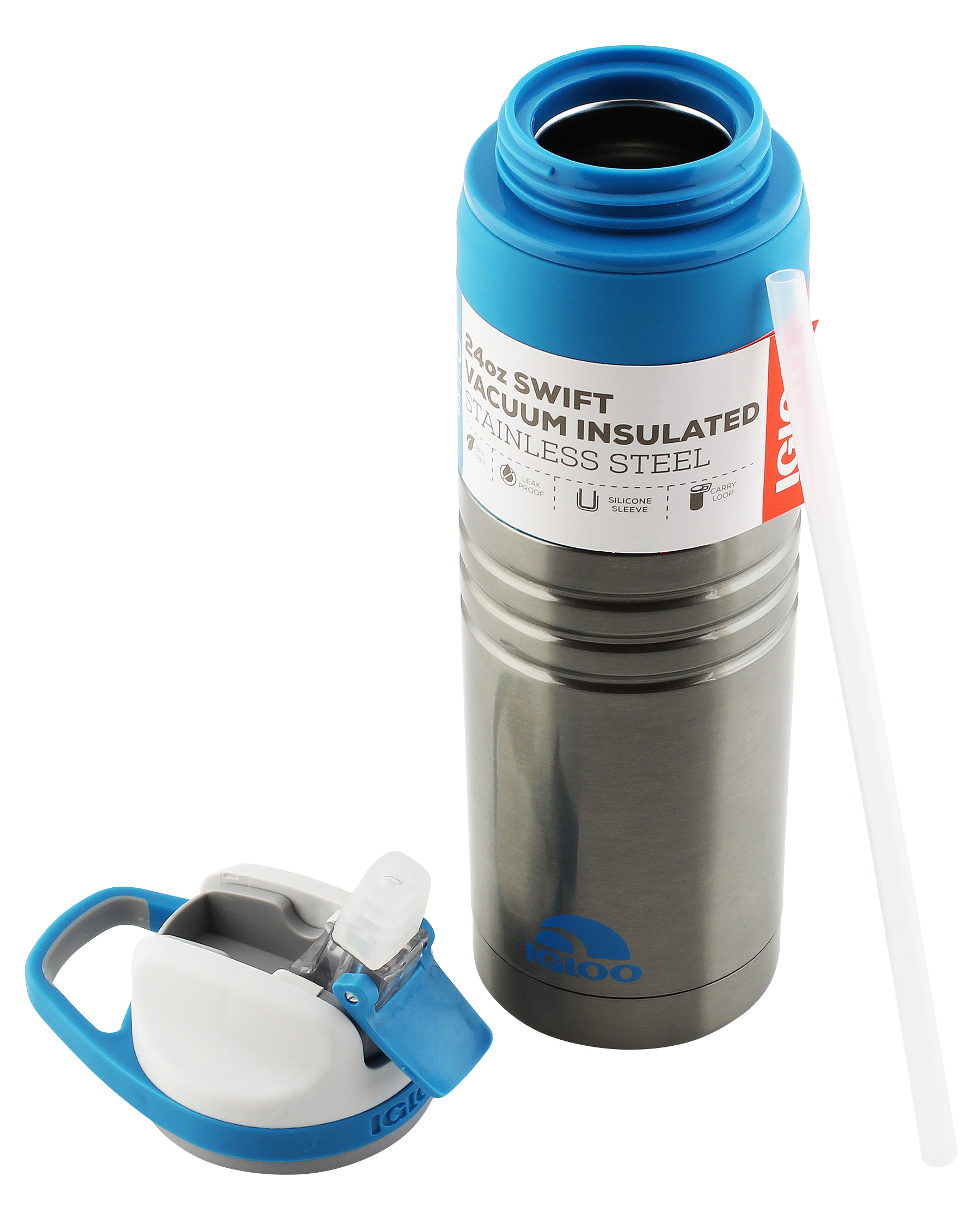 Кружка-термос из нержавеющей стали 700 мл igloo swift 24 deep sea. Объем: 700 миллилитров (24 ounces) Материал корпуса: Нержавеющая сталь 18/8 Материал колбы: Нержавеющая сталь 18/8 Пробка: Съемная, пластиковая на резьбе Особенности: Встроенная в крышку петля для переноски в руке Сохраняет горячее: до 8 часов (только теплые напитки для глотков из трубочки) Сохраняет холодное: до 30 часов • Легкая, компактная, герметичная, небьющаяся кружа-термос с двумя стенками из нержавеющей 18/8 стали и вакуумной изоляцией. • Объем 0,7л • Для настольного использования, для занятий спортом, для отдыха на природе, для путешествий на автомобиле. • Пожизненная гарантия изолирующего действия*. • Легкая, компактная, небьющаяся кружа-термос с двумя стенками из нержавеющей стали 18/8 и вакуумной изоляцией • Мягкий силиконовый чехол на корпусе бутылки для удобного захвата рукой • Система поильника с трубочкой позволяет пить на ходу • Технология «SIP SHIELD™» — Особая конструкция откидного поильника с защитной крышкой для гигиеничной эксплуатации • Встроенная в крышку петля для удобства переноски с прорезиненной внутренней частью • Не использовать в посудомоечной машине (только для мытья руками). • Не размещать в СВЧ печи.