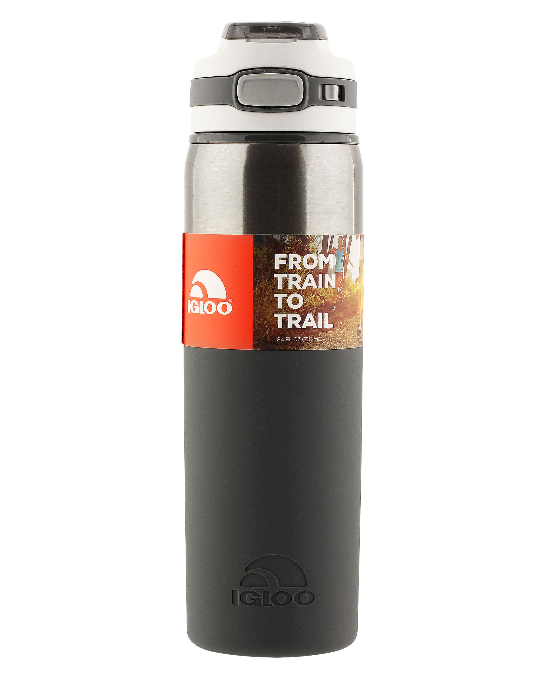 Кружка-термос из нержавеющей стали 700 мл igloo tahoe 24 asphalt. Объем: 700 миллилитров (24 ounces) Материал корпуса: Нержавеющая сталь 18/8 Материал колбы: Нержавеющая сталь 18/8 Пробка: Съемная, пластиковая на резьбе Особенности: Кнопка-фиксатор «Lid Lock», откидное кольцо для переноски Сохраняет горячее: до 8 часов (только теплые напитки для глотков из трубочки) Сохраняет холодное: до 30 часов • Легкая, компактная, герметичная, небьющаяся кружа-термос с двумя стенками из нержавеющей 18/8 стали и вакуумной изоляцией. • Объем 0,7л • Для настольного использования, для занятий спортом, для отдыха на природе, для путешествий на автомобиле. • Пожизненная гарантия изолирующего действия*. • Легкая, компактная, небьющаяся кружа-термос с двумя стенками из нержавеющей стали 18/8 и вакуумной изоляцией • Мягкий силиконовый чехол на корпусе бутылки для удобного захвата рукой • Система поильника с откидной крышкой и кнопкой блокировки «Lid Lock» от случайного проливания для 100% герметичности • Технология «AUTO CHUG™» — Кнопка на крышке обеспечивает открытие бутылки одной рукой • Встроенная в крышку петля для удобства переноски • Не использовать в посудомоечной машине (только для мытья руками). • Пластик Tritan™, BPA-Free для переноски • Не размещать в СВЧ печи.