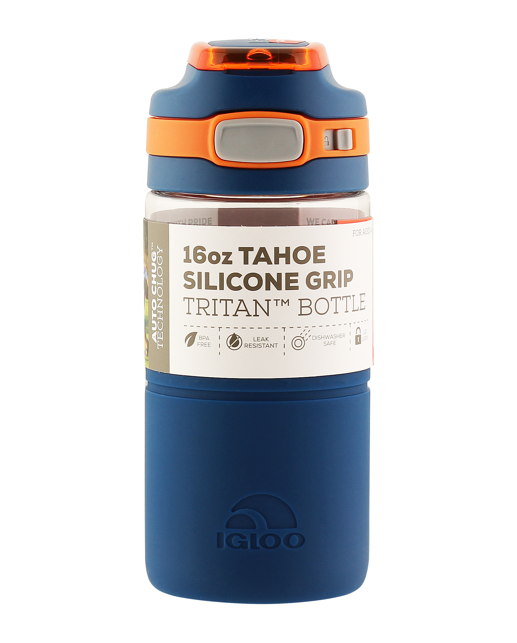 Бутылка для воды и напитков 473 мл igloo tahoe silicone 16 blue. Объем: 473 миллилитра (16 ounces) Материал корпуса: Пластик Tritan™ Пробка: Съемная, пластиковая на резьбе Особенности: Кнопка-фиксатор «Lid Lock», откидное кольцо для переноски • Пластик BPA-Free #8212; Состав пластика не содержит Бисфенол А. • Прочный и прозрачный пластиковый корпус Tritan™. • Мягкий силиконовый чехол на корпусе бутылки для удобного захвата. • Широкое питьевое горлышко позволяет дозировать напиток. • Технология «AUTO CHUG™» #8212; Кнопка на крышке обеспечивает открытие бутылки одной рукой. • Функция блокировки «Lid Lock» при помощи кнопки-слайдера исключает случайное открытие. • Предохранительный замок крышки для 100% герметичности защищает от случайного проливания. • Встроенная в крышку ручка Tritan™ для удобства переноски. • Подходит для мытья в посудомоечных машинах. • Не подходит для использования в СВЧ печи.