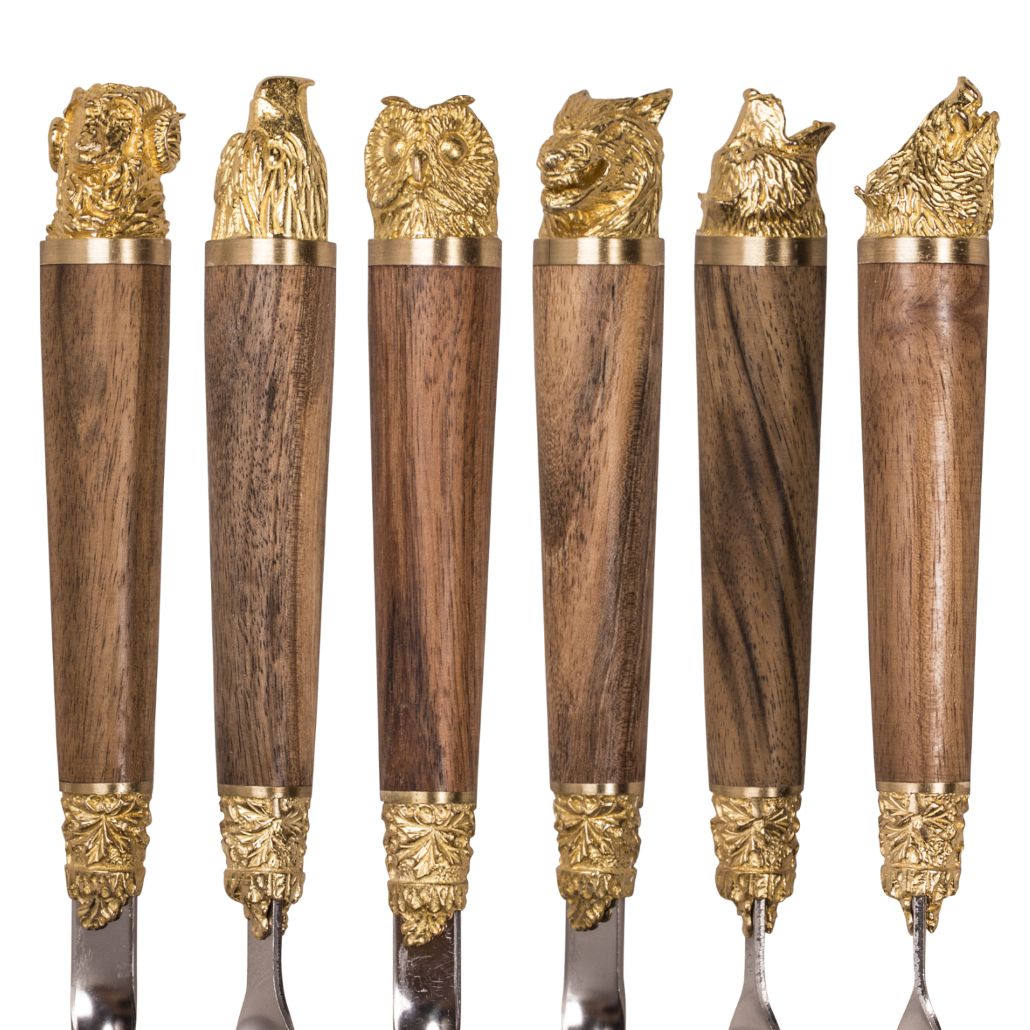 Шампуры 6шт. «разные звери» с рукоятью из ореха и латуни