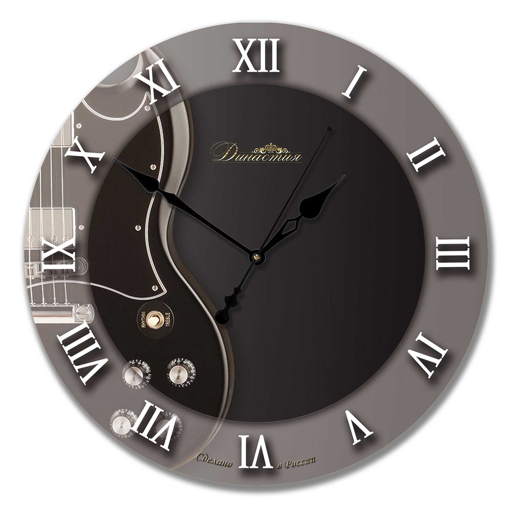 Настенные часы из стекла династия 01-025 "гитара". Настенные часы из стекла Династия 01-025 Гитара Настенные часы из стекла Династия 01-025 Гитара оснащены надежным кварцевым механизмом с бесшумным плавным ходом секундной стрелки. Корпус из стекла, декорирован изображением гитары. Это популярная музыкальная тематика. Характеристики часов Династия 01-025 Гитара: Открытые стрелки часов Производитель: Россия. Гарантия 1 год. Материал: стекло. Диаметр: 33 см. Размер, см : 33х33х4 Материал : Стекло Механизм : Кварцевый Функции : Плавный бесшумный ход