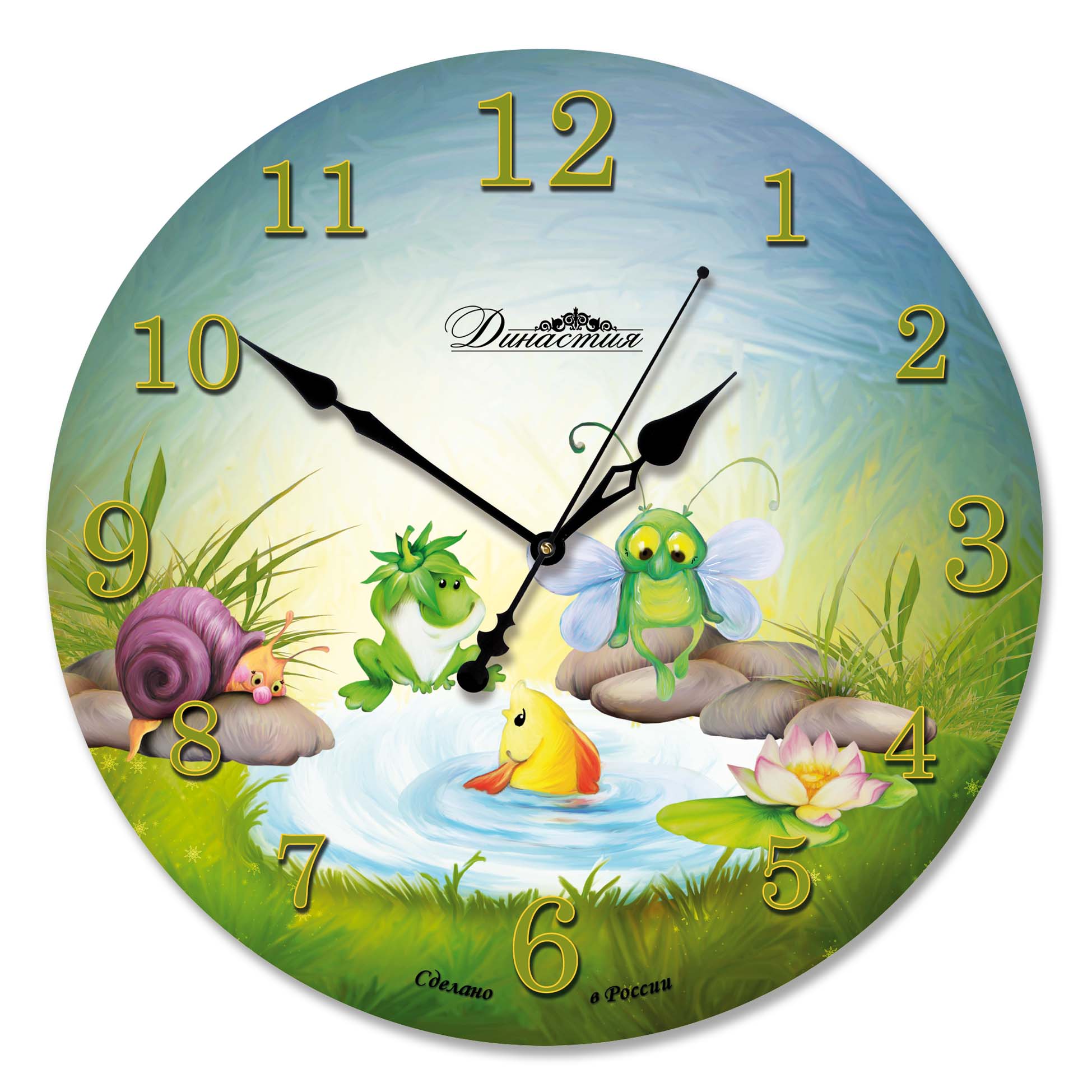 Настенные часы из стекла династия 01-040. Настенные часы из стекла Династия 01-040 Озерные жители Настенные часы из стекла Династия 01-040 Озерные жители имеют надежный кварцевый механизм. Плавный ход секундной стрелки. Корпус из стекла, декорирован изображением речных жителей(лягушка, улитка, рыба, лилия). Открытые стрелки часов.Циферблат зелено-голубого цвета , с фигурными стрелками.Эти яркие настенные часы отлично впишутся в дизайн любой детской комнаты. Характеристики часов Династия 01-040 Озерные жители: Механизм:Кварцевый Материал: стекло Диаметр: 33 см Производитель:Россия Гарантия:1 год Размер, см : 33х33х4 Материал : Стекло Механизм : Кварцевый Функции : Плавный бесшумный ход