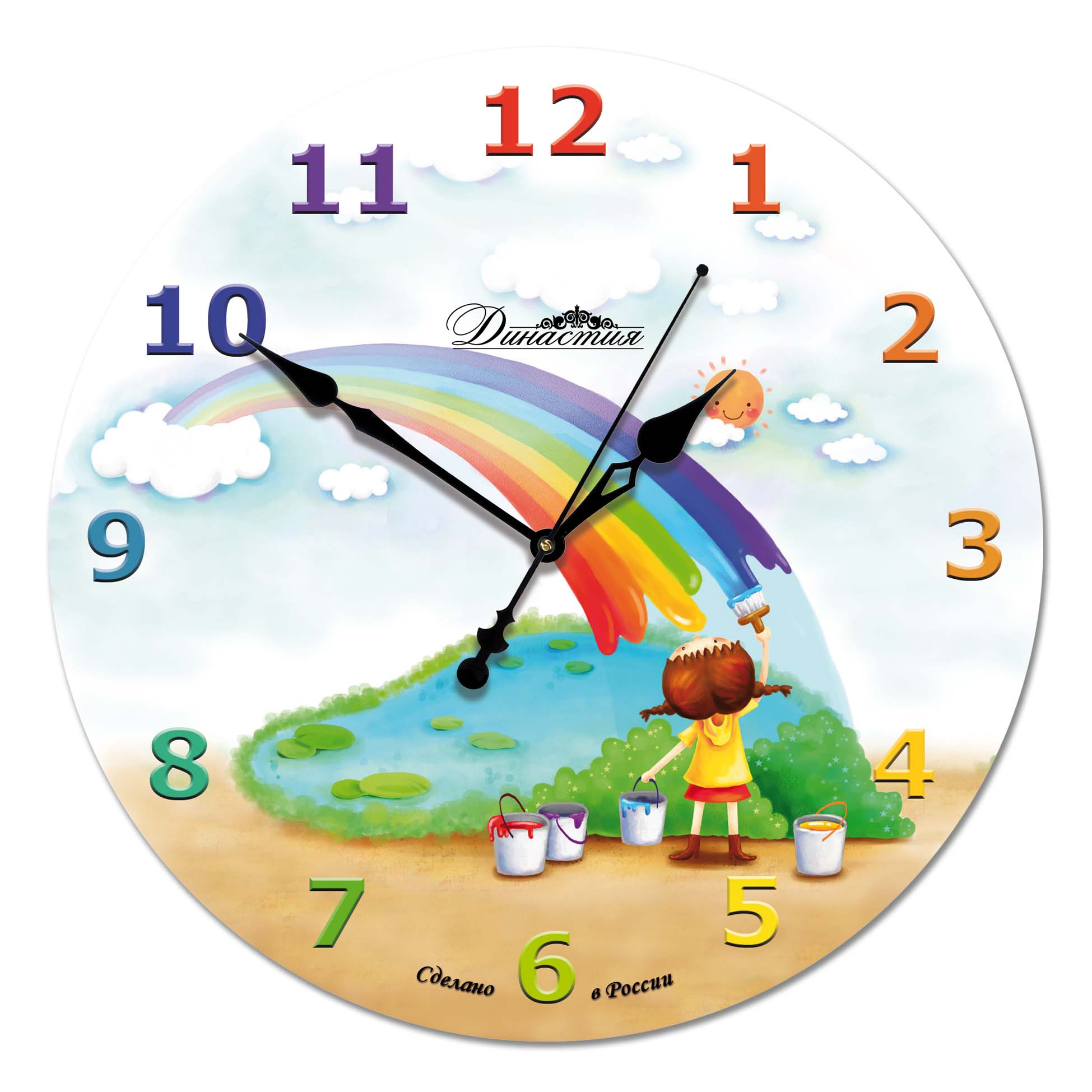 Настенные часы из стекла династия 01-044. Настенные часы из стекла Династия 01-044 Радуга Настенные часы из стекла Династия 01-044 Радуга имеют надежный кварцевый механизм. Плавный ход секундной стрелки. Корпус из стекла, декорирован изображением радуги. Циферблат светлый ,с открытыми фигурными стрелками черного цвета.Цифры обозначены крупно в латинице разных цветов. Эти яркие настенные часы отлично впишутся в дизайн детской комнаты. Характеристики часов Династия 01-044 Радуга: Механизм:Кварцевый Материал: Стекло Диаметр: 33 см Производитель:Россия Гарантия:1 год Размер, см : 33х33х4 Материал : Стекло Механизм : Кварцевый Функции : Плавный бесшумный ход