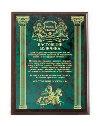 Плакетка подарочная настоящий мужчина (грав.).