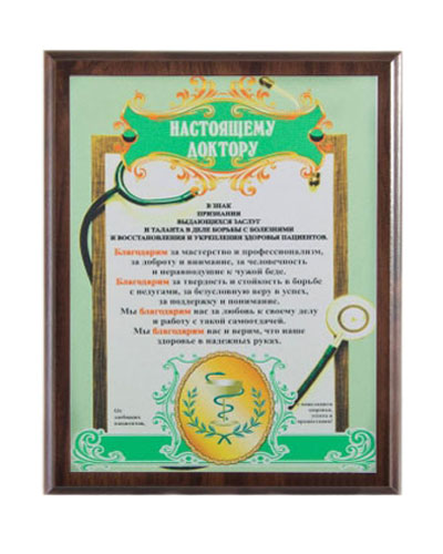 Плакетка подарочная  настоящему доктору Плакетка подарочная  настоящему доктору