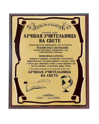 Плакетка наградная лучшая учительница(инд. дизайн) - сублимация.