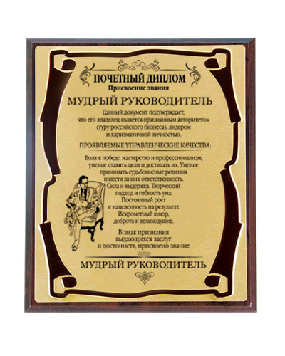 Плакетка мудрый руководитель зол. металл. субл.. Код товара: 010304004 Основной материал: МДФ, Металл Размер: 26*20см Детали: Упаковка: декоративный картон