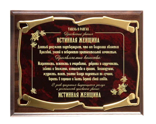 Плакетка наградная истинная женщина - золотая серия Плакетка наградная истинная женщина - золотая серия