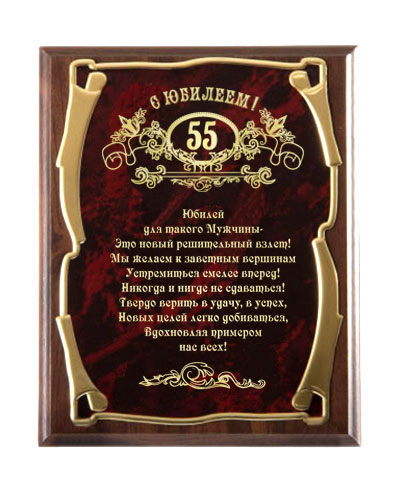 Плакетка наградная с юбилеем 55 лет! (муж.) золотая серия.