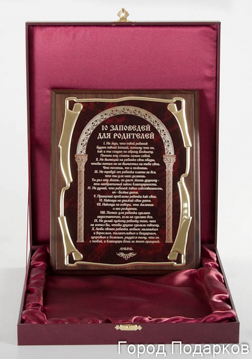 Плакетка молитва 10 завопедей для родителей - золотая серия элит.