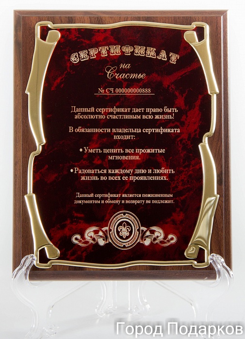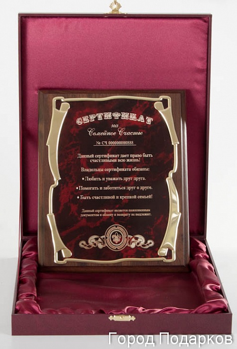 Плакетка сертифика на семейное счастье - золотая серия элит Плакетка сертифика на семейное счастье - золотая серия элит