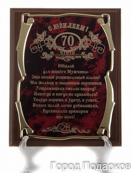 Элит плакетка наградная с юбилеем 70 лет! (муж.) золотая серия