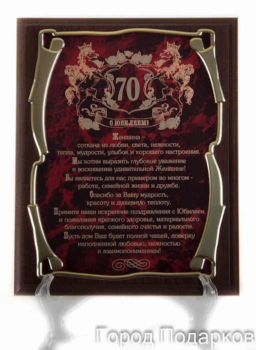 Элит плакетка наградная с юбилеем 70 лет! (жен.) золотая серия.