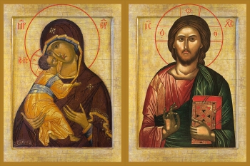 Венчальная пара икон господь вседержитель (арт.01047) и божия матерь влади