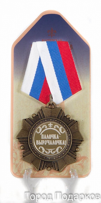 Орден подарочный Золотая медаль умника! Нож Финка - 2 (сталь дамасская, граб/ал)
