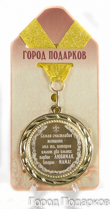 Медаль подарочная самая счастливая женщина-эта та, которая имеет два... (с. Код товара: 010603059 Размер: d=7см