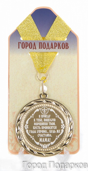 Медаль подарочная я приеду к тебе, поцелую морщинки твои...(станд). Код товара: 010603065 Размер: d=7см