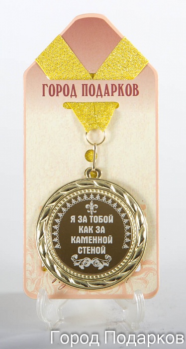 Медаль подарочная я за тобой,как за каменной стеной! (станд). Код товара: 010605016 Размер: d=7см