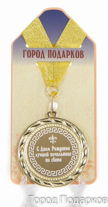Медаль подарочная с днем рождения лучшей начальнице на свете. Код товара: 010606009 Размер: d=7см