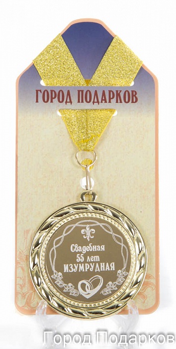 Медаль подарочная свадебная 55-изумрудная (станд).