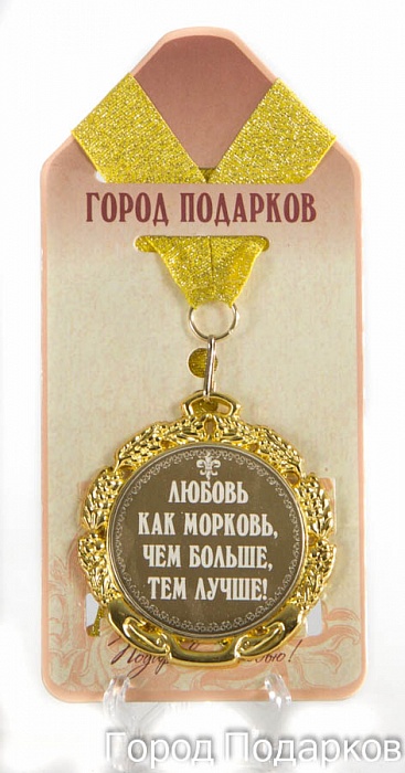 Медаль подарочная любовь как морковь,чем больше,тем лучше! (станд). Код товара: 010609011 Размер: d=7см