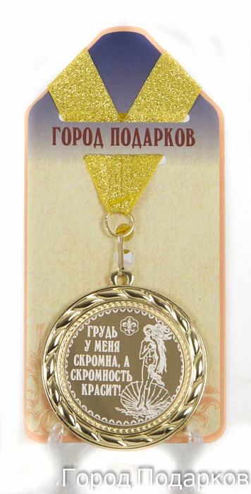 Медаль подарочная грудь у меня скромная,а скромность красит. Код товара: 010611031 Размер: d=7см