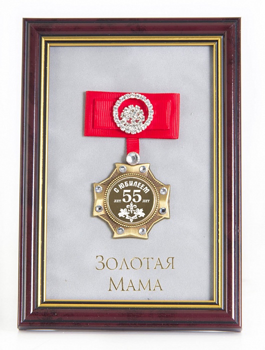 Орден в багете с юбилеем 55лет!золотая мама (красный бант, стразы, наклейк