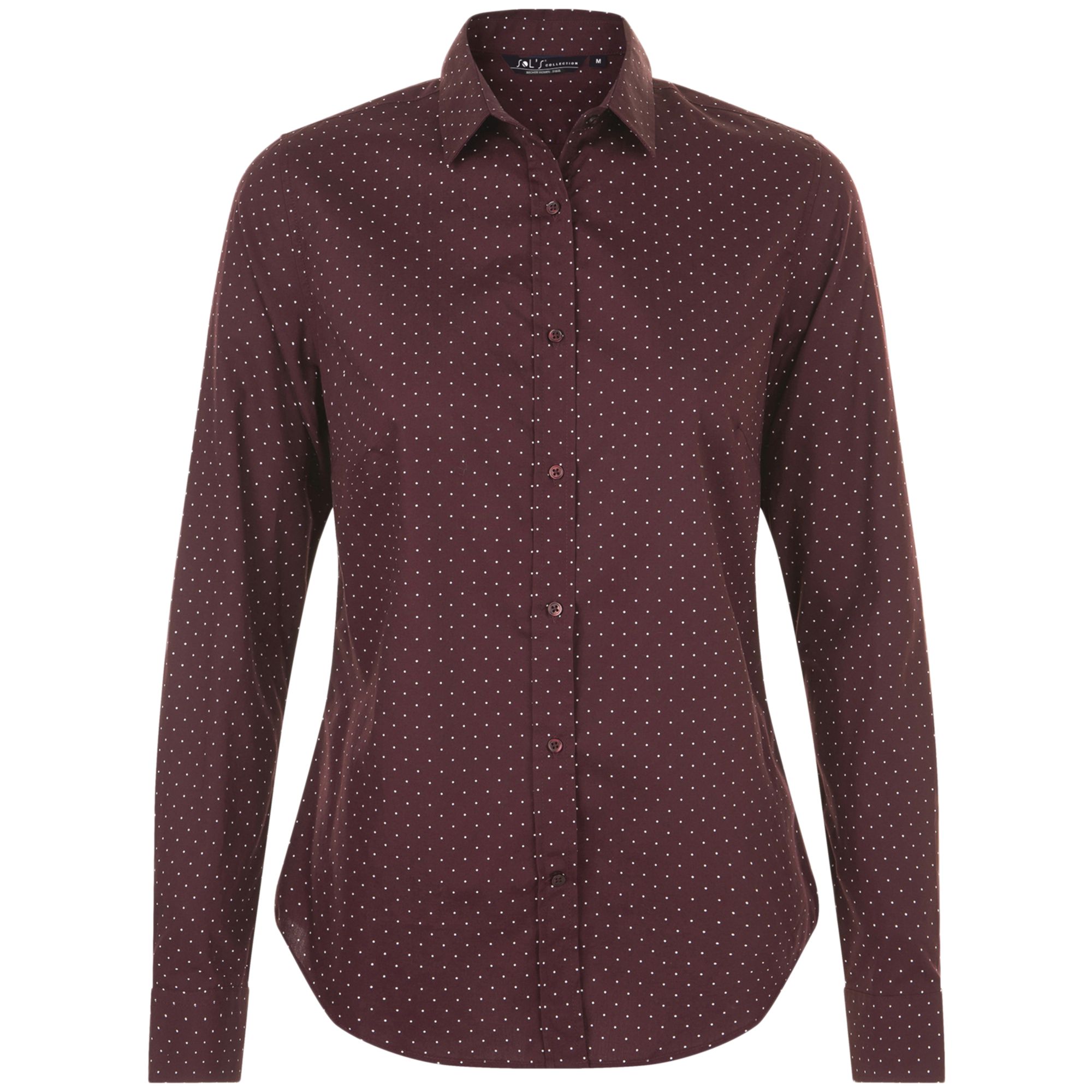Рубашка женская becker women, бордовая с белым. Pantone ближайший цвет - 504C Актуально на 05.12.17 Внимание! Код цвета по Pantone приводится справочно, рекомендуем заказать образец Размеры XS–XXL Материал хлопок 100%, плотность 110 г/м?; поплин Вес (1 шт.) 260 г SOLS Color Card 502 Транспортная упаковка 56,0x36,0x17,0 см Вес 5,20 кг Объем упаковки 0,034 м? Количество в упаковке 20 шт. Виды нанесения B-Шелкография F1-Флекс F2-Флекс IS1-Шеврон с припариванием IS2-Шеврон с пришиванием I-Вышивка Модная рубашка с печатным рисунком в горошек, которая прекрасно впишется в современный корпоративный стиль. Приталенная модель с нагрудными вытачками, маленьким классическим воротничком, планкой с 7 пуговицами тон в тон и манжетами на 1 пуговице с разрезом «капуцин». Таблица размеров: XS S M L XL XXL 67/44,5 68/46,5 69/48,5 70/50,5 71/54,5 72/58,5