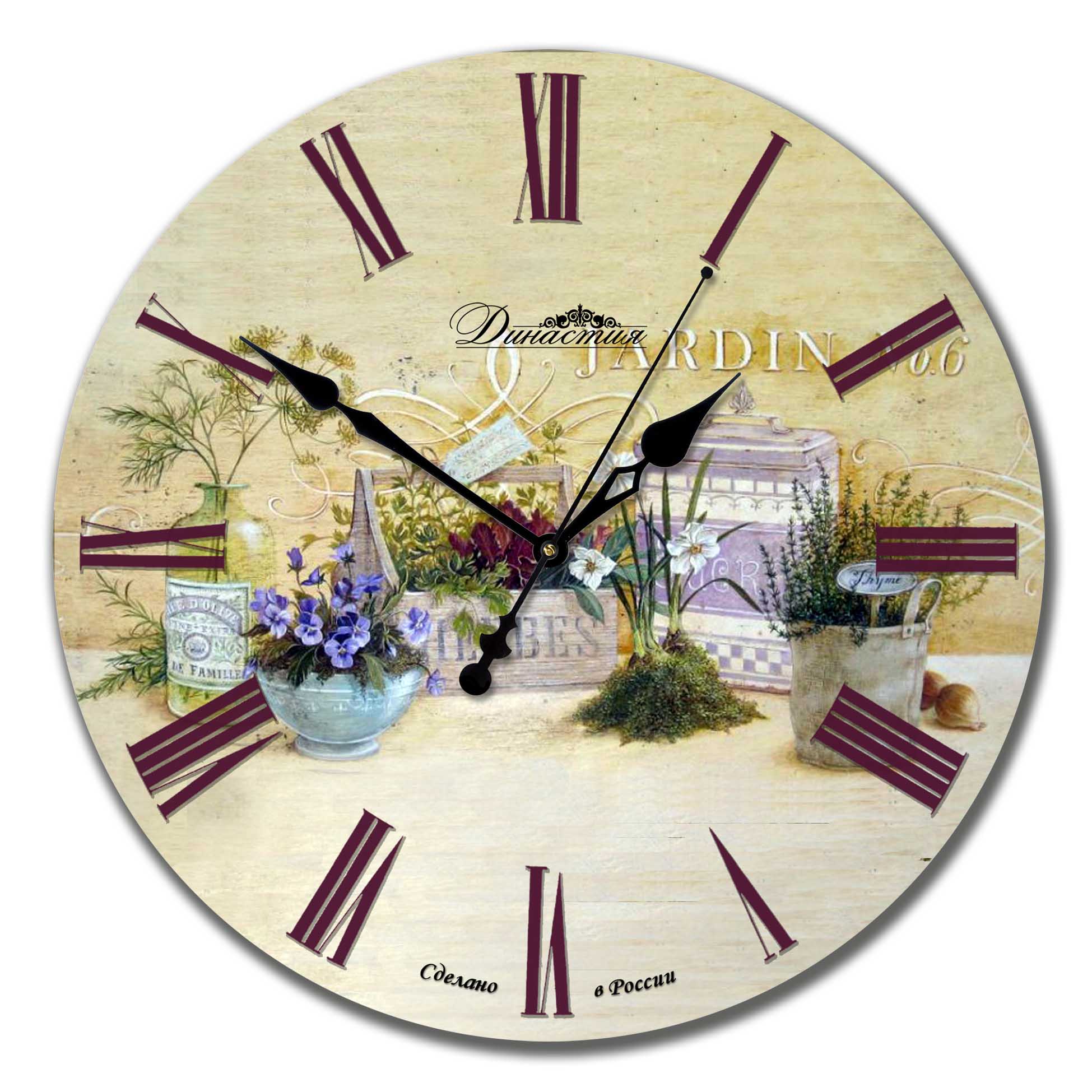 Настенные часы династия 02-021. Настенные часы из дерева Династия 02-021 Натюрморт Настенные часы из дерева Династия 02-021 Натюрморт оснащены надежным кварцевым механизмом Плавный ход секундной стрелки. Корпус из дерева, декорирован изображением цветов. Открытый циферблат бежевого цвета с фигурными стрелками черного цвета. Временные рамки обозначены римскими цифрами . Эти настенные часы отлично подойдут для Вашей кухни. Характеристики часов Династия 02-021 Натюрморт: Механизм:Кварцевый Материал: Дерево. Диаметр: 33 см. Производитель: Россия. Гарантия 1 год. Размер, см : 33х33х4 Материал : Дерево Механизм : Кварцевый Функции : Плавный бесшумный ход