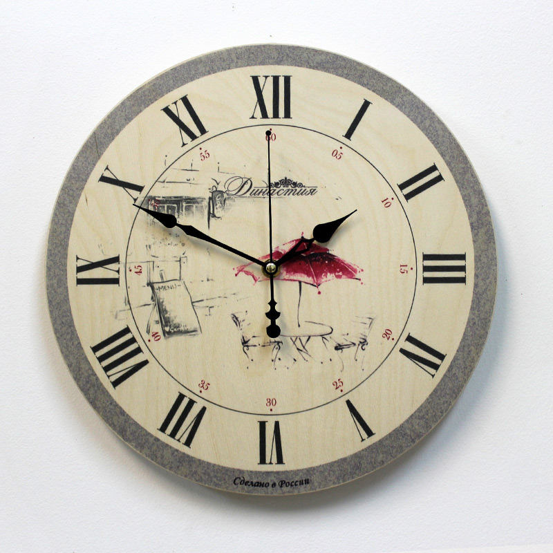 Настенные часы династия 02-027 красный зонтик. Настенные часы из дерева Династия 02-027 Красный зонтик Настенные часы из дерева Династия 02-027 Красный зонтик оснащены надежным кварцевым механизмом Плавный ход секундной стрелки. Корпус из дерева, декорирован изображением красного зонтика. Часы в стиле Прованс. Открытый циферблат бежевого цвета с фигурными стрелками черного цвета. Временные рамки обозначены римскими цифрами . Эти настенные часы отлично подойдут для Вашей кухни и комнаты. Характеристики часов Династия 02-027 Красный зонтик: Механизм:Кварцевый Материал: Дерево. Диаметр: 33 см. Производитель: Россия. Гарантия 1 год. Размер, см : 33х33х4 Цвет : Бежевый Материал : Дерево Механизм : Кварцевый Функции : Плавный бесшумный ход