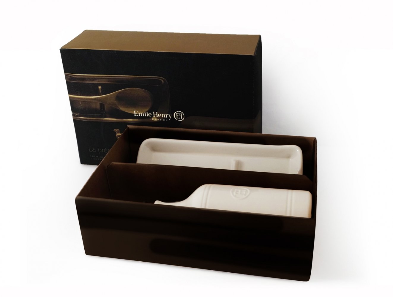 Подарочный набор Emile Henry: бутылка для масла и подставка под ложку (кре