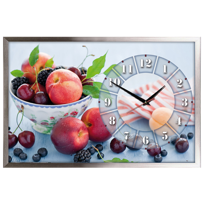 Настенные часы из песка династия 03-159 "фрукты". Настенные часы из песка Династия 03-159 Фрукты Настенные часы из песка Династия 03-159 Фрукты имеют необычный дизайн, сделанные по уникальной технологии. Дизайнерские часы с изображением фруктов. Часы великолепно подойдут для кухни. Римский циферблат на светлом фоне с контрастными стрелками. Характеристики часов Династия 03-159 Фрукты: Форма: прямоугольные. Размер: 39х25х3.5 см. Механизм кварцевый бесшумный. Открытые стрелки часов (без стекла). Материал: кварцевый песок. Багет: пластик. Производство: Россия Размер, см : 39х25х3.5 Материал : Кварцевый песок Механизм : Кварцевый Функции : Плавный ход/Ручная работа