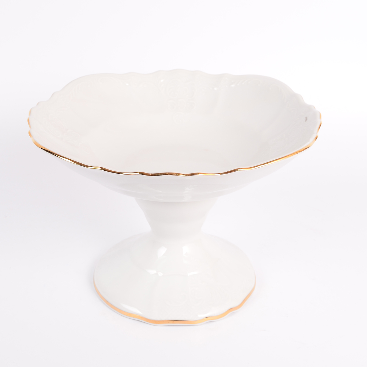 Ваза для фруктов на ножке Bernadotte белый узор 25 см