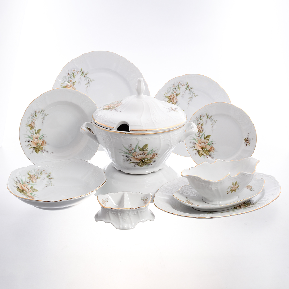 Столовый сервиз на 6 персон Bernadotte зеленый цветок 27 предметов