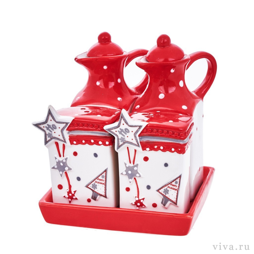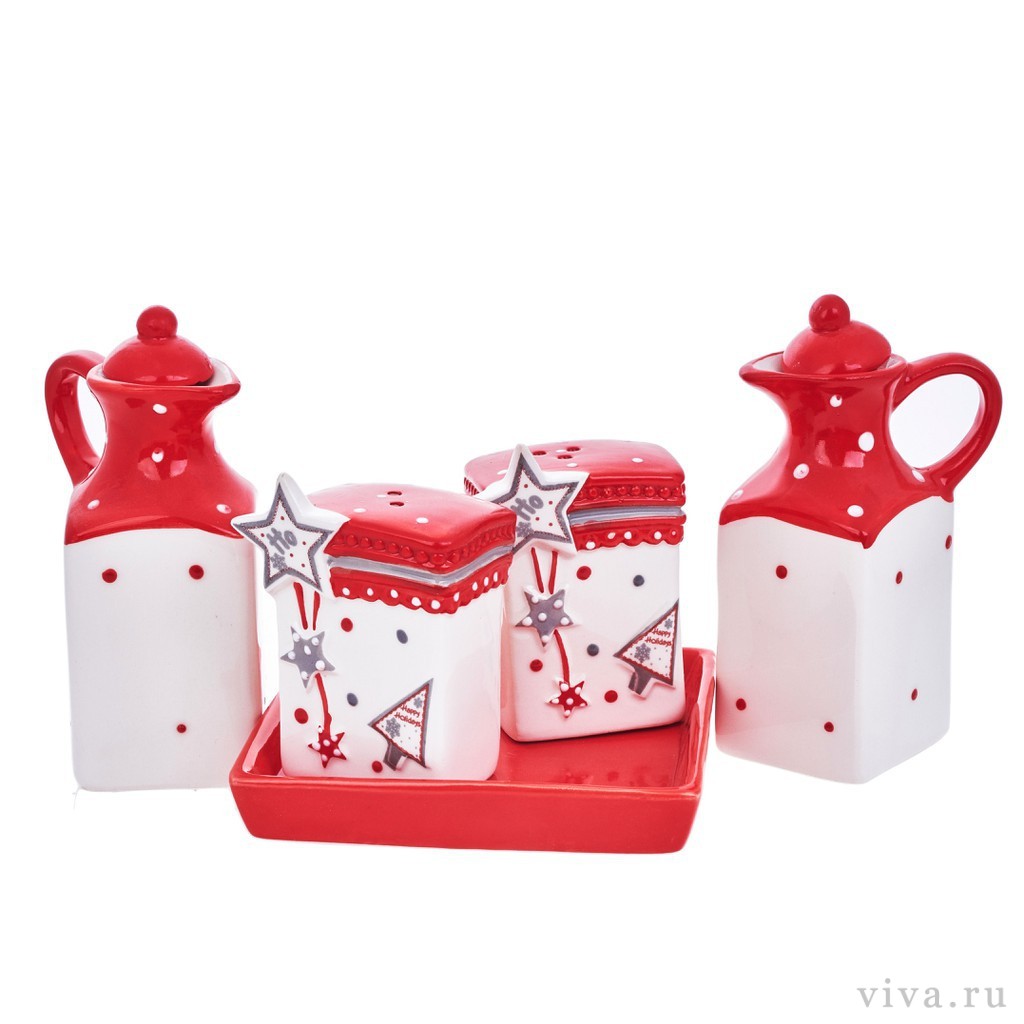 Набор из 4-х предметов для масла и специй «красный»