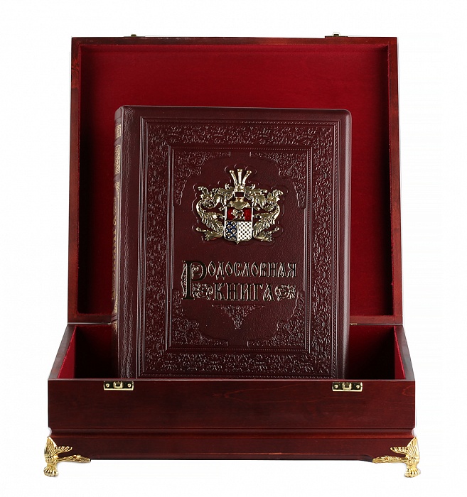 Родословная книга гербовая с литым дворянским гербом в деревянном футляре