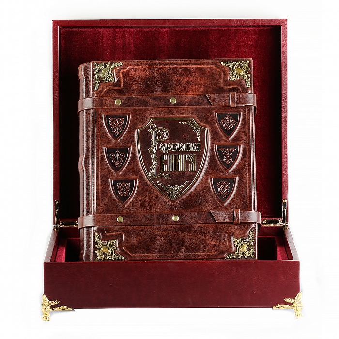 Родословная книга элитная с бронзовыми уголками в футляре кона