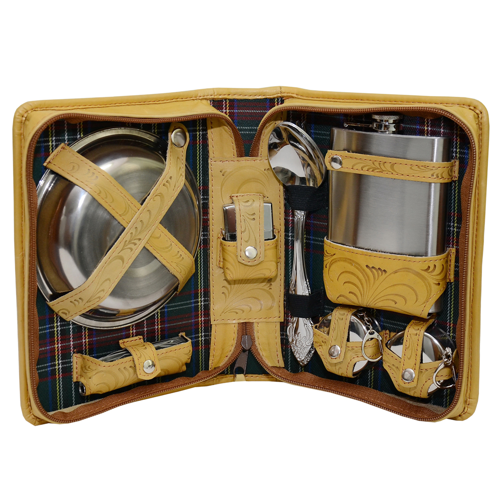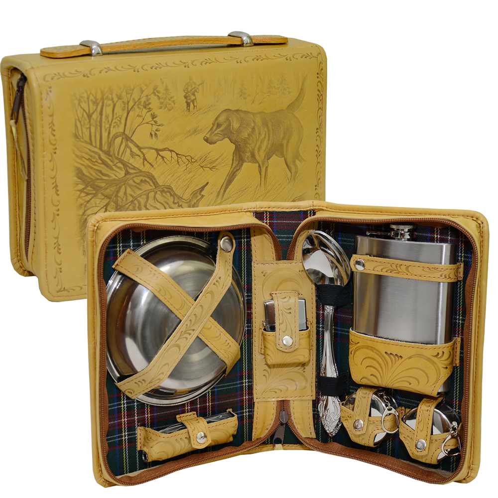 Набор для пикника несессер №5. Код товара: 040505042 Основной материал: кожа, ткань, металл Размер: 23x16x7см Детали: Вес:0,8кг