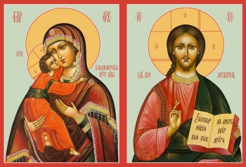 Венчальная пара икон господь вседержитель (арт.04108) и божия матерь влади