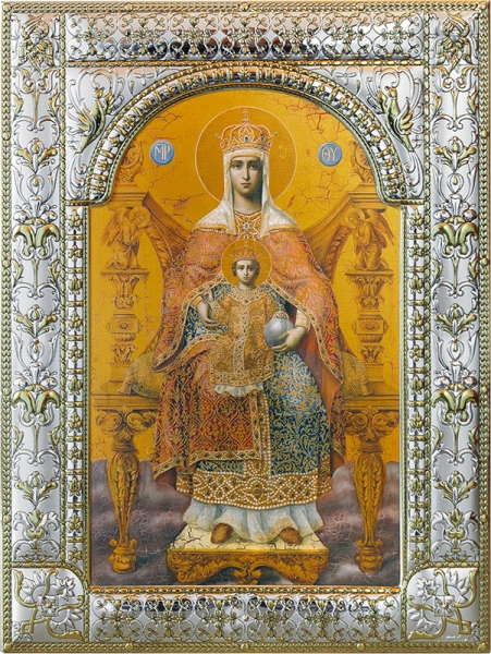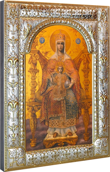 Державная икона божией матери, икона в посеребренной рамке, золочение, 180 Державная икона божией матери, икона в посеребренной рамке, золочение, 180