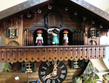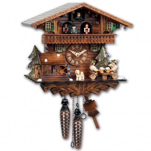 Часы с кукушкой sars кварцевые (германия). Часы с кукушкой SARS 0446-8MT Часы с кукушкой SARS c (Германия) имеют надежный немецкий механизм и безупречное качество сборки и производства. - Корпус выполнен из натурального дерева, собран очень качественно опытными мастерами своего дела, декорирован резными элементами тонкой ручной работы и украшен ручной росписью. - Кукушка срабатывает каждый полный час. Каждый час проигрывает одна из 12-ти мелодий. - Автоматическое (с 22 до 7 утра) и ручное отключение мелодии и кукования (3 режима: кукование+мелодия, кукование, отключены мелодия и кукование) - Оригинальность этих настенных часов с кукушкой SARS подчеркивают вращающиеся при срабатывании кукушки фигурки- двигаются фигурки сверху, водяное колесо(слева) и мужики поднимают и опускают кружки пива (чёкаются). - Отличительной особенностью этих часов является фотоэлемент, который обеспечивает автоматический переход в тихий режим в ночное время, т.е. кукушка не срабатывает.Также можно в любой момент отключить кукование и мелодию. SARS воплощает мечту многих о счастливом детстве, бабушкиных сказках и уютных посиделках в кругу семьи. Характеристики SARS 0446-8MT: Дополнительные функции - кукушка срабатывает каждый час, мелодия и двигаются фигуркиМеханизм - кварцевыйРазмер- 29x31x18 см, высота 31 смКорпус - деревоМелодия - 12 разных мелодийАвтоматическое (с 22 до 7 утра) и ручное отключение мелодии и кукования История компании SARS Компания была основана 13 мая 1943 в городе San Juan de Vilasar, Испания. Ранее планировалось совместное участие Швейцарского капитала, но из-за событий Второй Мировой Войны производство началось в 1945 году при полном финансировании Испанской стороной при участии Banco Hispano Colonial de Barcelona. В 1946 году была продана первая партия часов. В 1953 году в соответствии с новыми законами, предприятие было перерегистрировано как “Sociedad An Размер, см : 31 Цвет : Коричневый Материал : Дерево Механизм : Кварцевый Функции : Автоматическое отключение на ночь (по времени), мелодия, движущиеся фигурки СКИДКИ : Индивидуальные